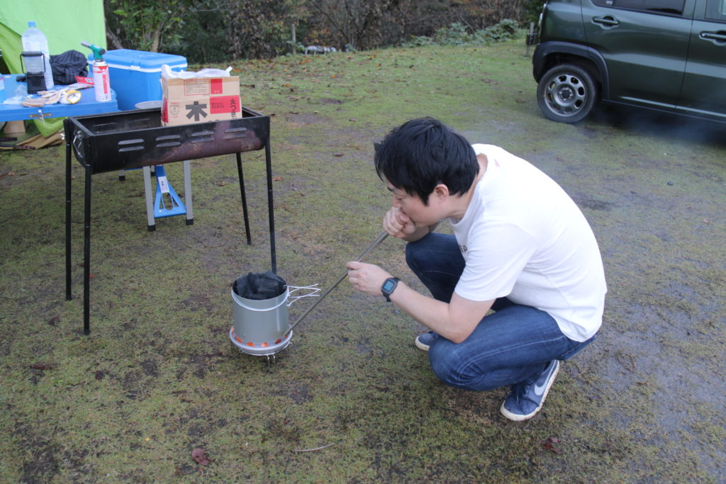 ヒロシさんや福井のカズさんのキャンプ動画を見てやってみたかった火吹き棒